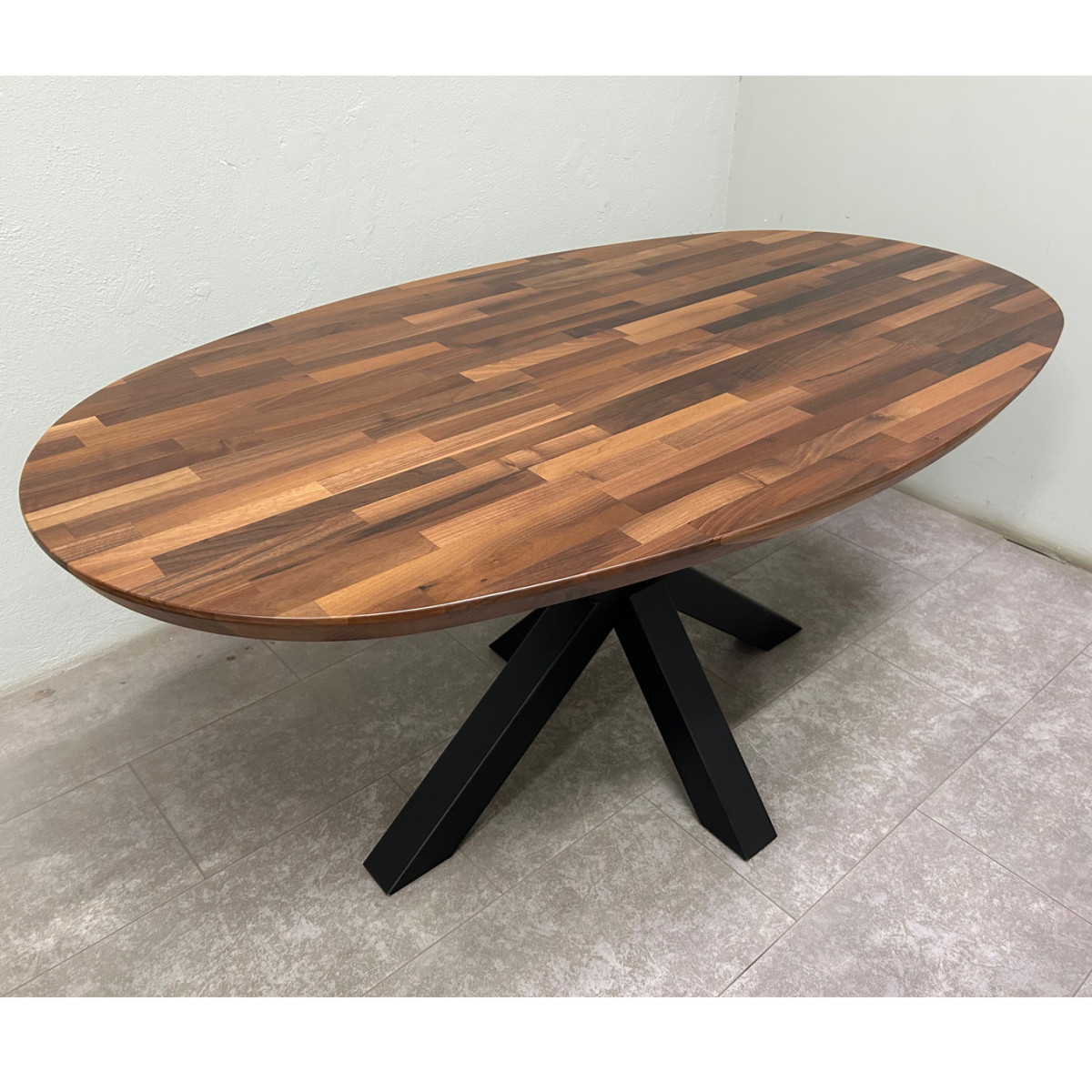 • Ovalna masivna jedilniška miza iz lesa oreh